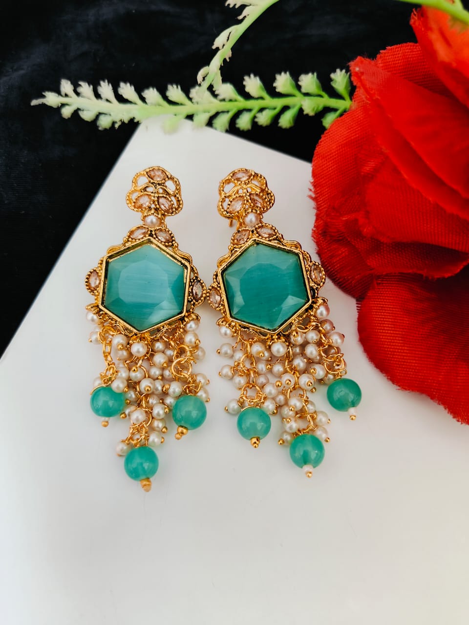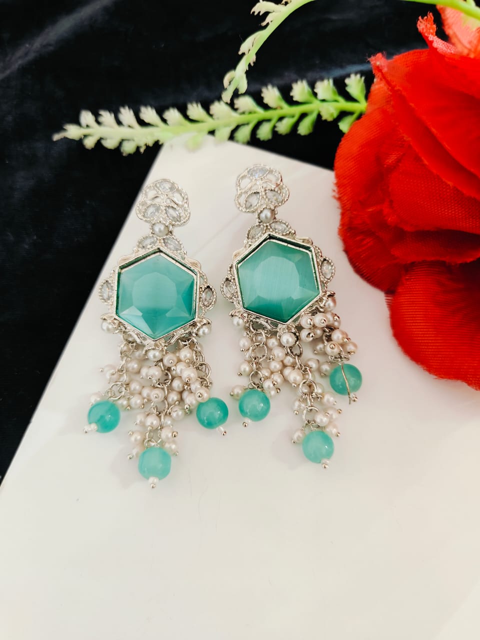 "These striking 3D big stone earrings are a bold statement piece, designed to captivate attention. Featuring oversized gemstones that exude elegance and luxury, each stone is meticulously cut to enhance its brilliance and dimension. The earrings boast a sleek, modern design, complemented by a high-quality metal finish, available in gold, silver, or rose gold tones. Perfect for formal occasions or to elevate everyday looks, these earrings combine timeless charm with contemporary style. Lightweight yet durable, they ensure comfort while making a dazzling impression."
