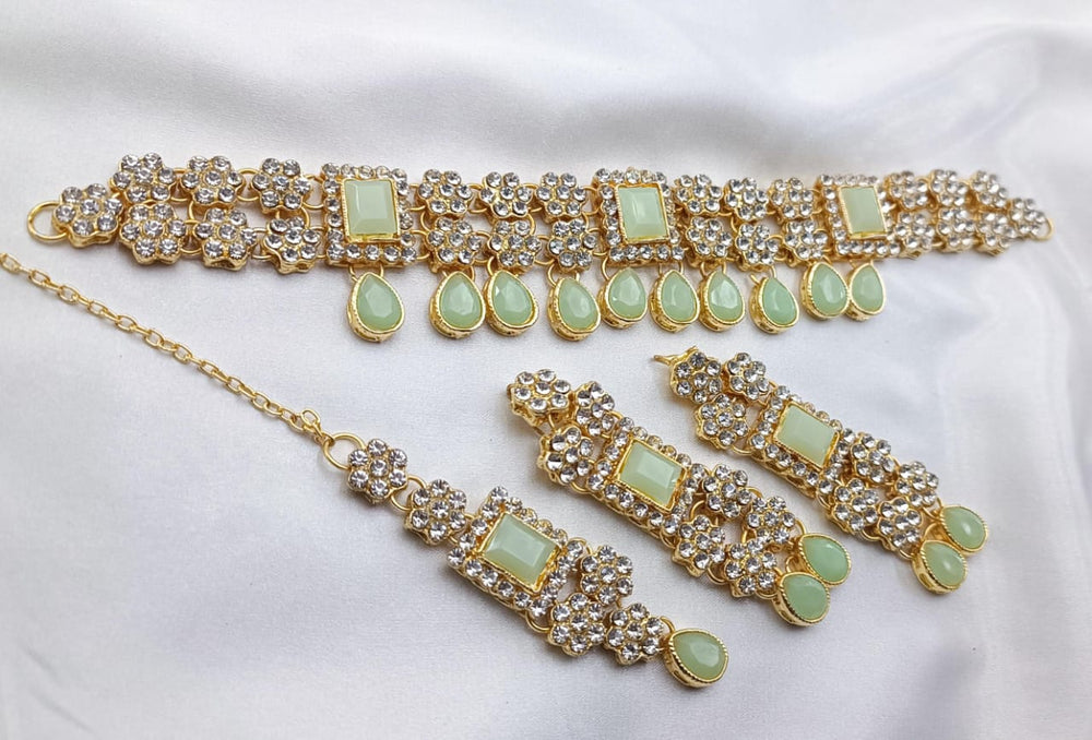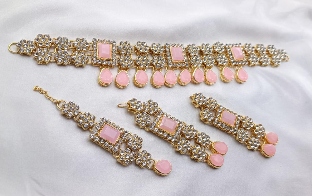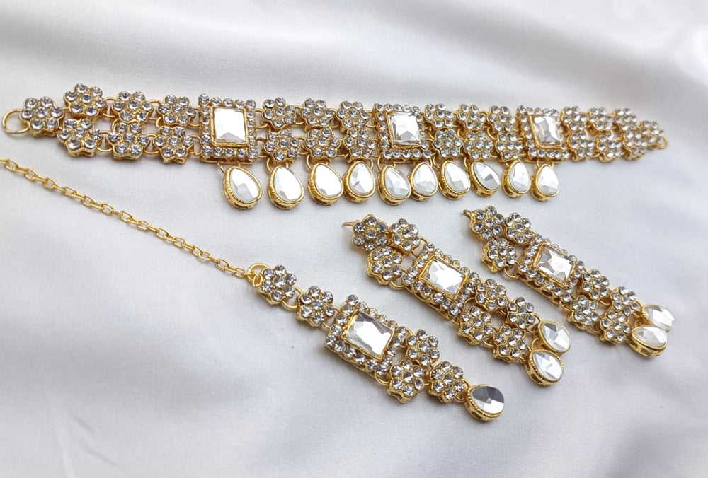 A Choker Set is a piece of jewelry that fits snugly around the neck, often designed to enhance elegance and style. High-quality choker sets are typically crafted with meticulous attention to detail, using premium materials and finishes. Here’s a general description of a fine-quality choker set: