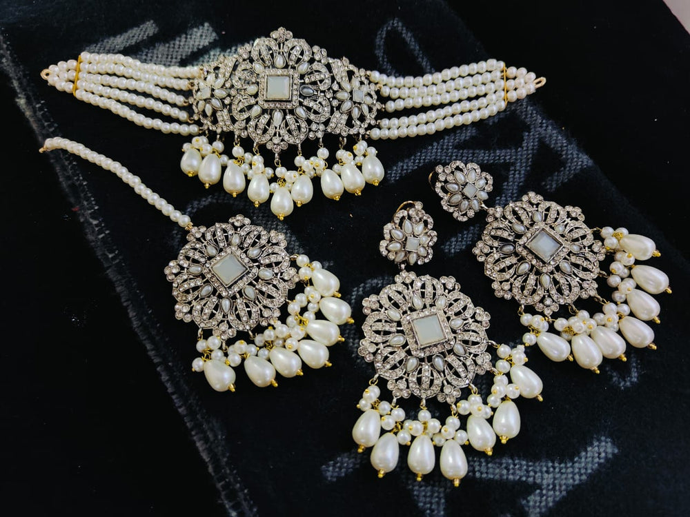 Elevate your elegance with this fine-quality 2-tone choker set, a perfect blend of modern craftsmanship and traditional allure.