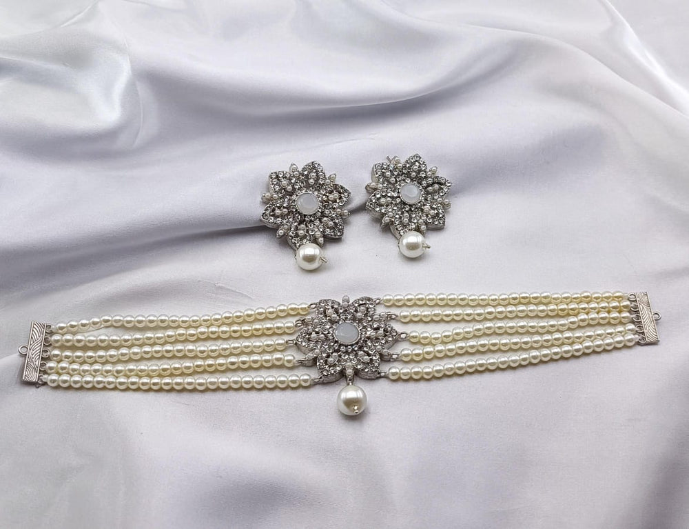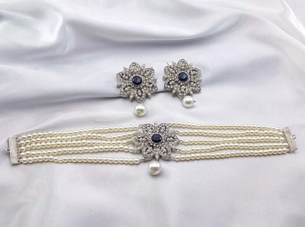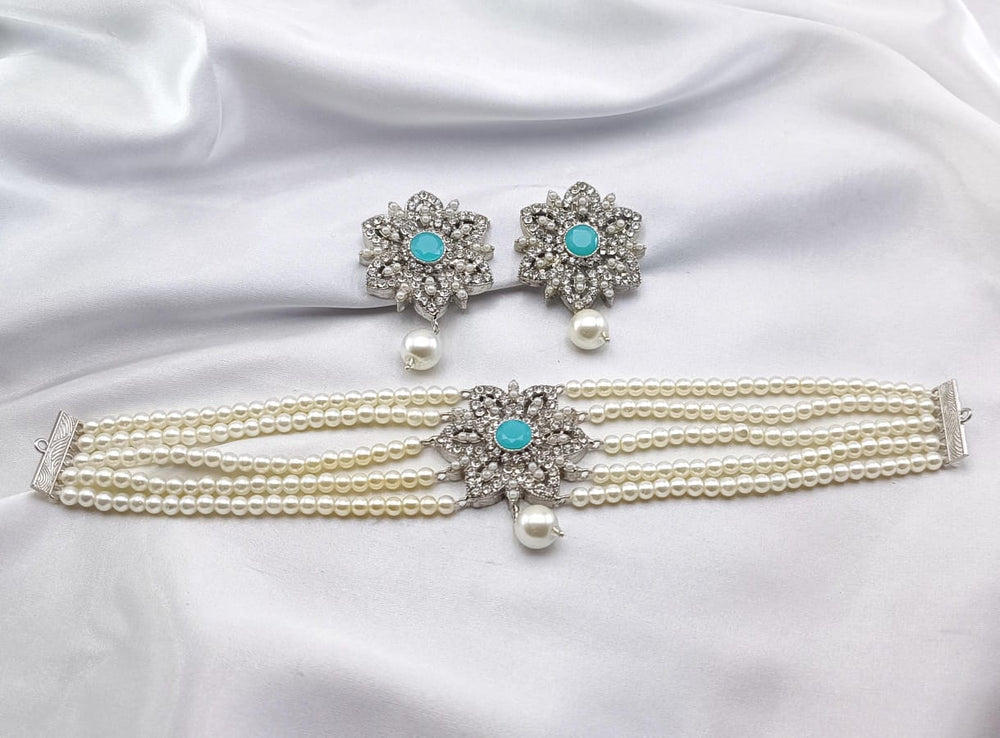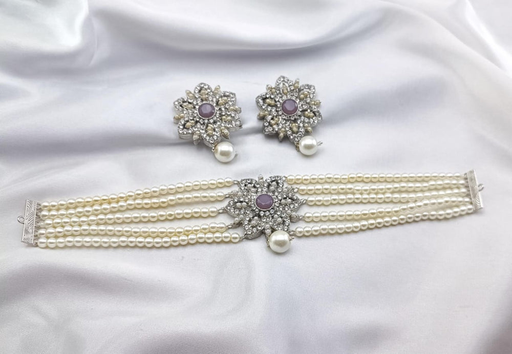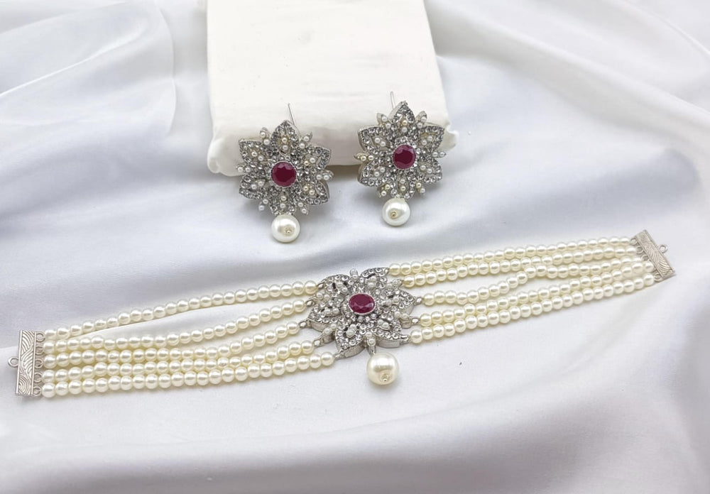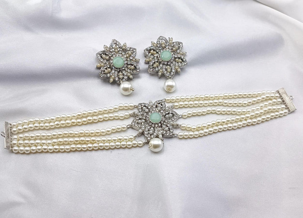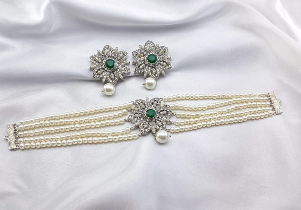 A choker set party wear jewellery typically includes an elegant and stylish choker necklace paired with complementary earrings or other accessories like maang tikka or bracelets. These sets are designed to make a bold statement and are often worn for festive occasions, weddings, and parties. Here’s what you might find in such a set: