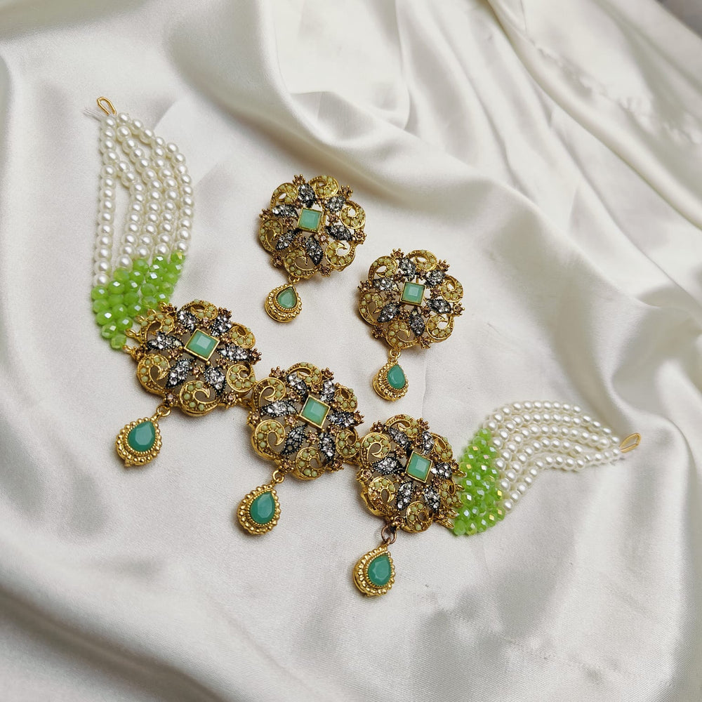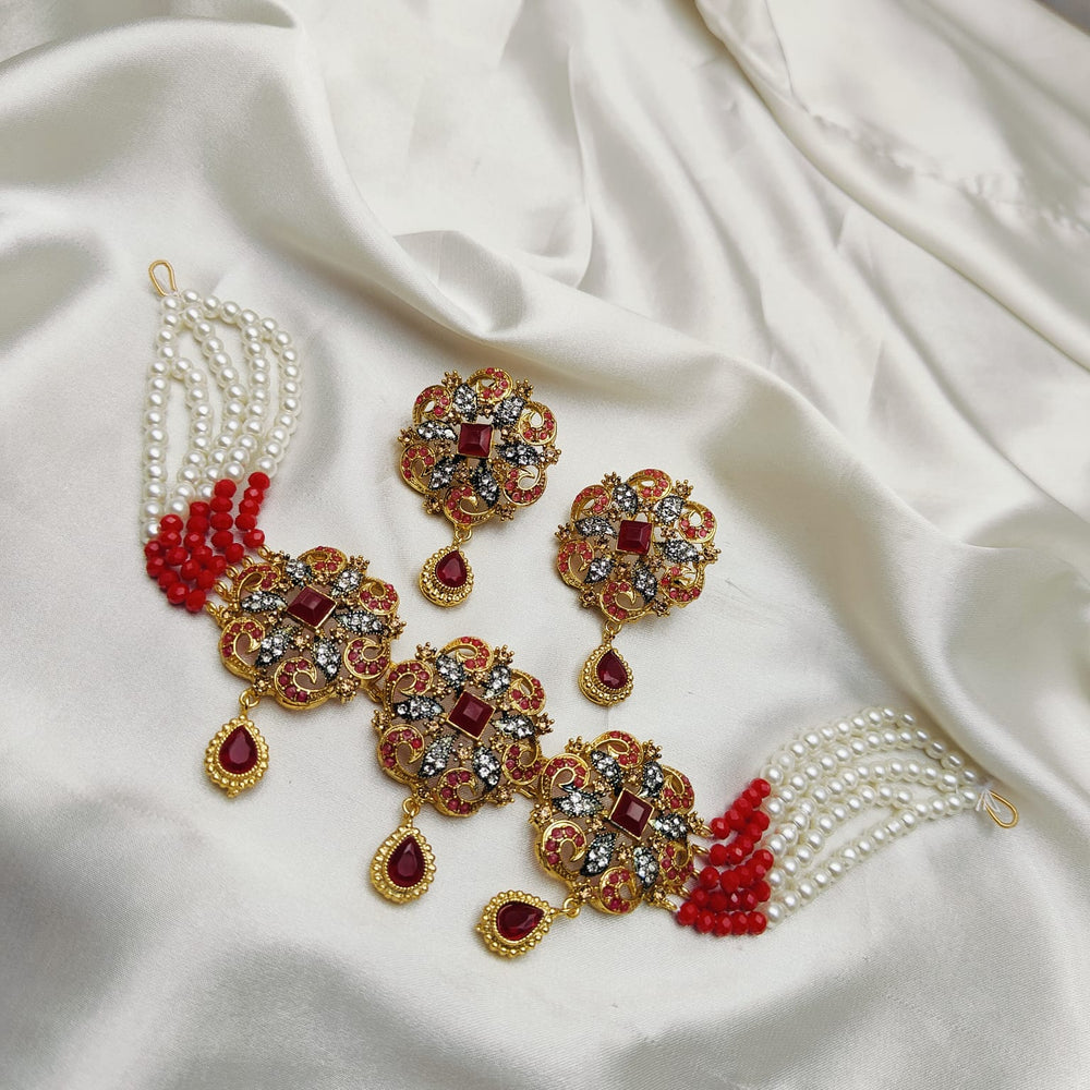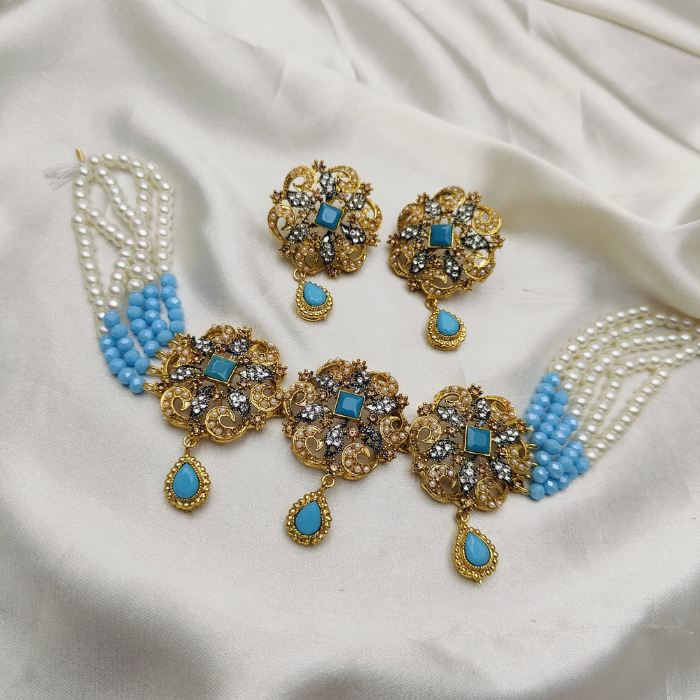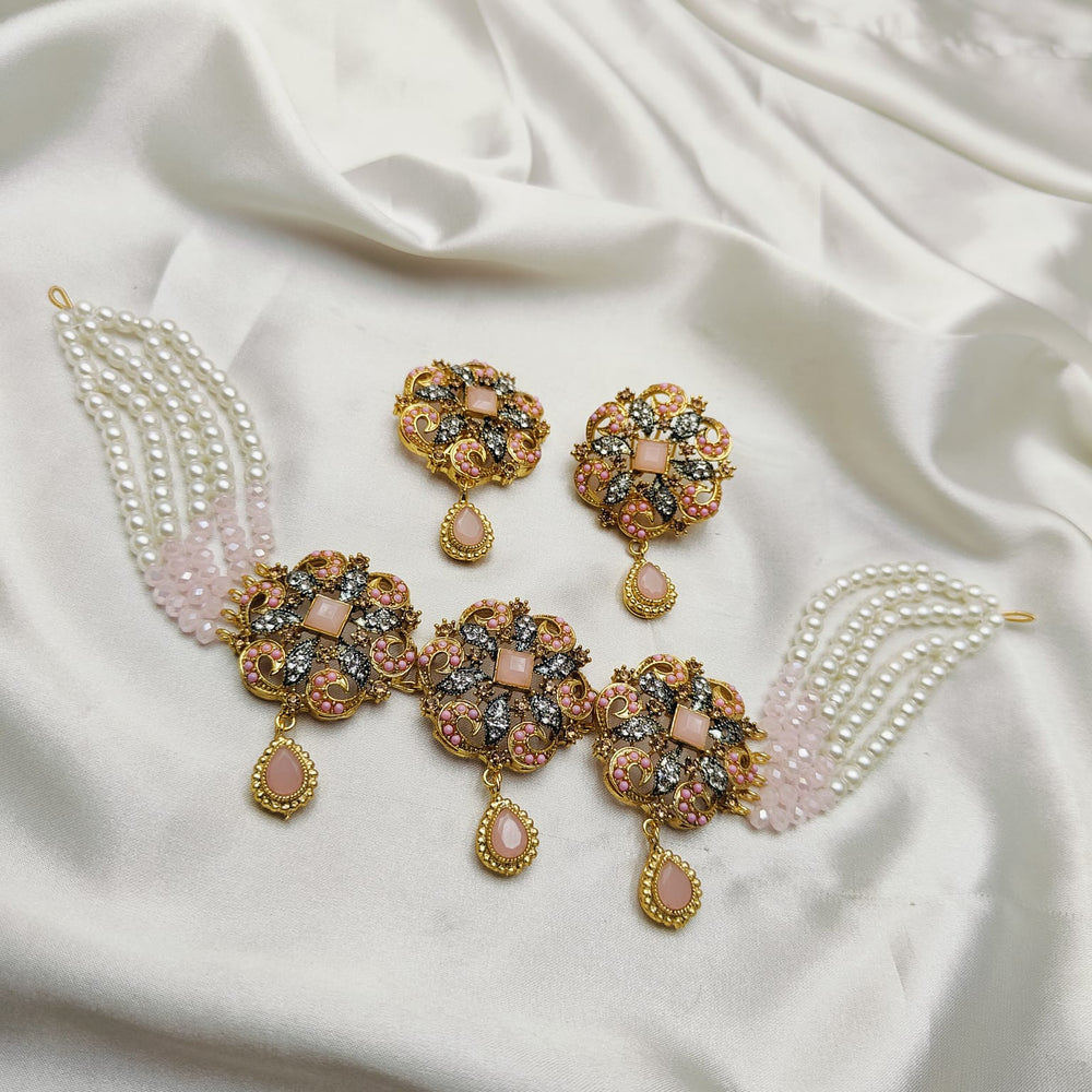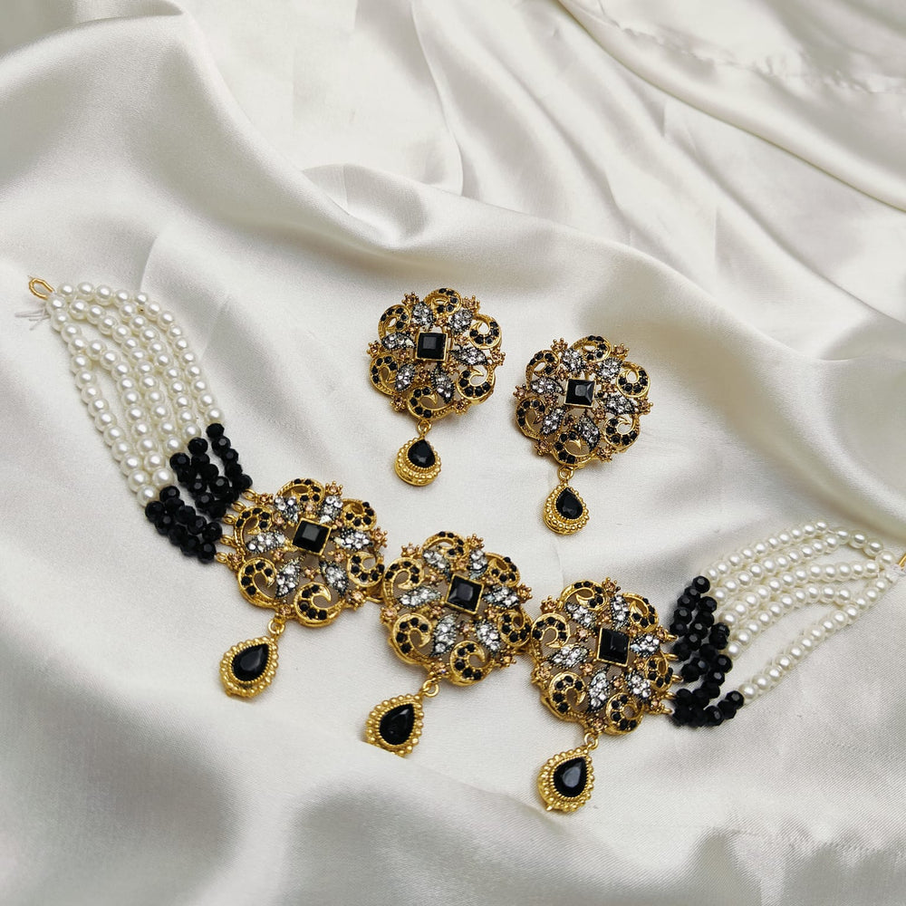 A Casting Party Choker Set is a stylish and elegant jewelry set that typically includes a choker necklace and matching accessories. The choker is usually made from materials like velvet, leather, or metal and features intricate designs, often embellished with charms, gemstones, or metallic accents. The set may also include complementary earrings or bracelets to complete the look. This type of jewelry is ideal for a formal or semi-formal event, adding a touch of sophistication and glamour to the outfit. The pieces are often designed with modern or vintage influences to suit various styles and occasions.