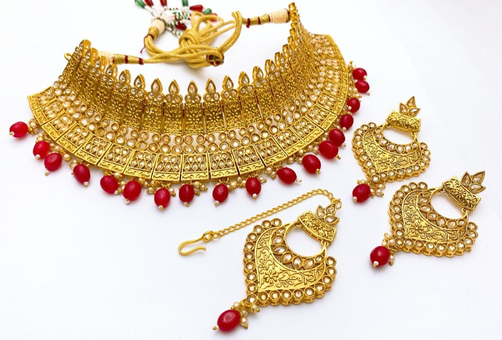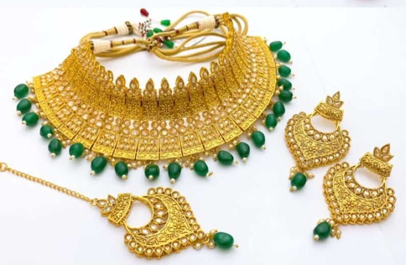 Components: Includes a necklace, matching earrings, maang tikka, and bangles (optional).