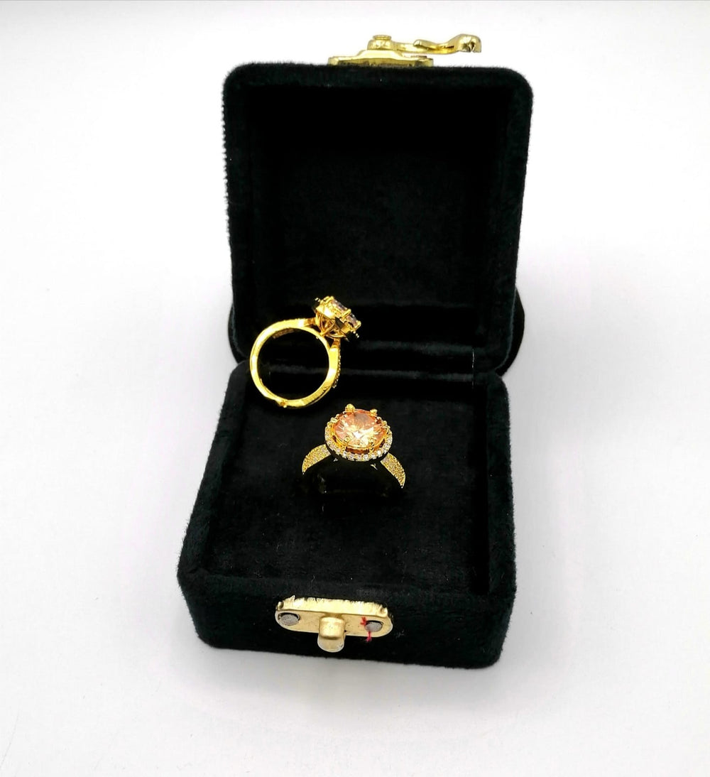 An engagement ring is a symbolic piece of jewelry typically given during a proposal as a promise of marriage. Its design often features: