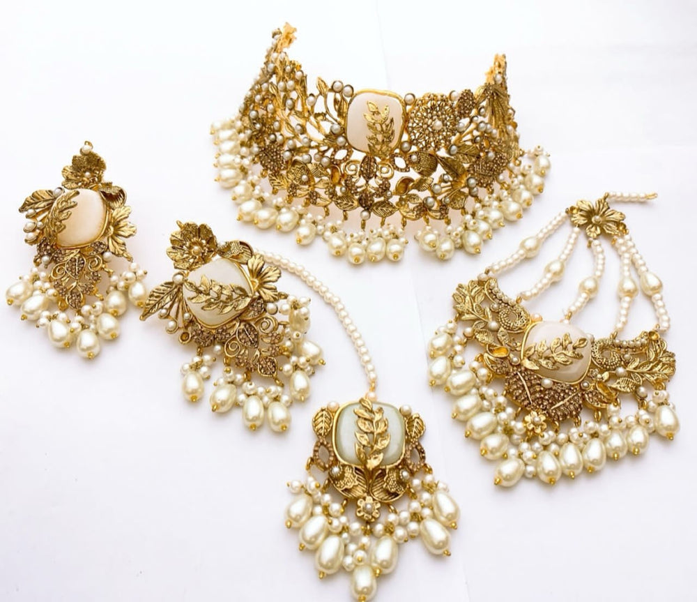 Ideal for brides seeking a unique and cultural touch, this Egyptian-inspired bridal set will make any wedding ensemble unforg