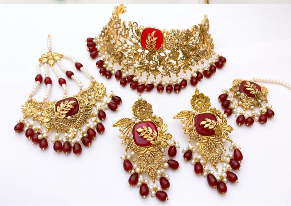 An Egyptian-inspired bridal jewelry set is characterized by its intricate designs, bold elegance, and the incorporation of symbolic motifs. Here's a possible description: