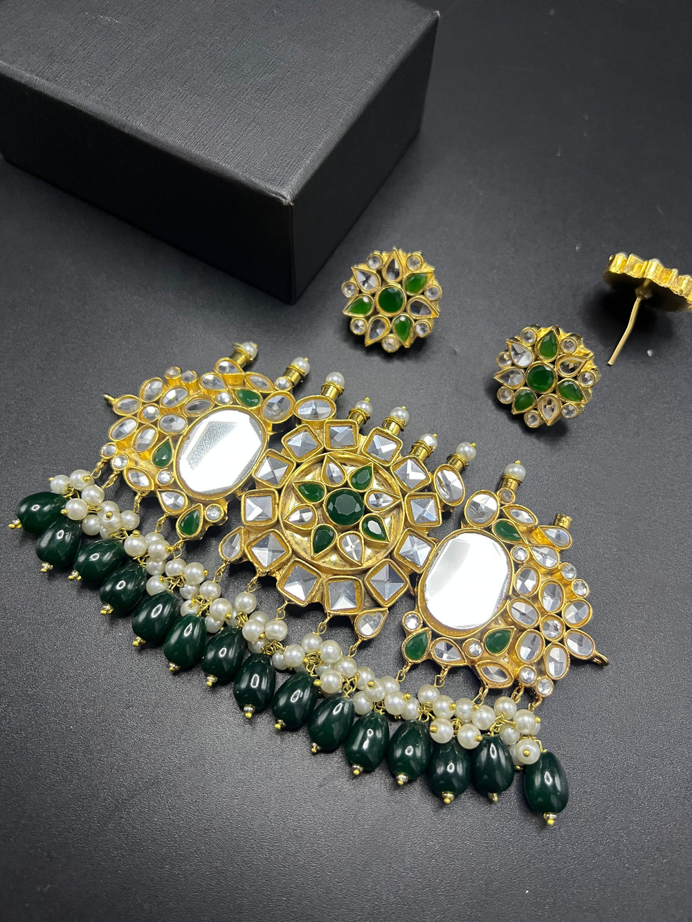 Emerald Forest Green: Adorned with rich green stones and dark green teardrop beads.