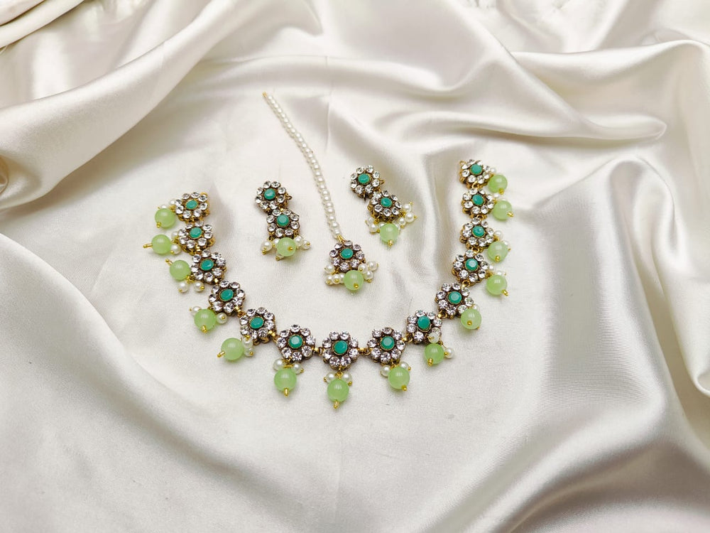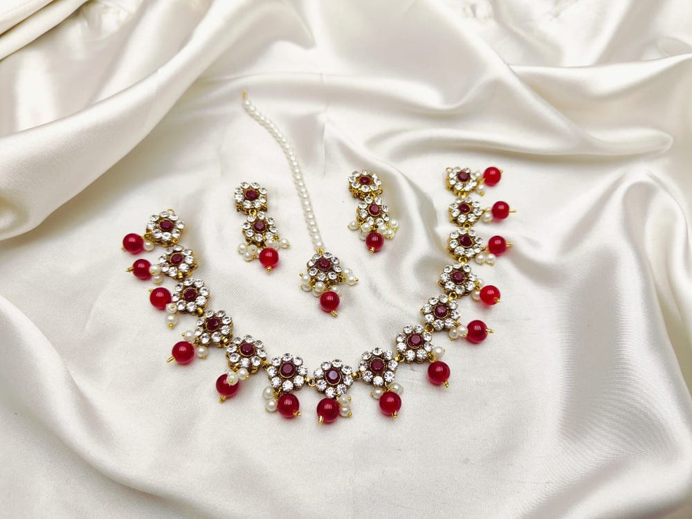 This exquisite choker set is perfect for weddings, parties, and festive celebrations. Pair it with ethnic or formal wear for a regal touch to your attire.