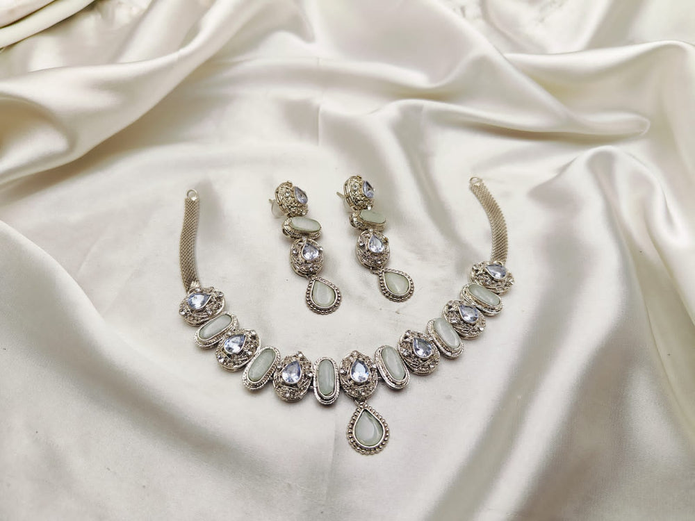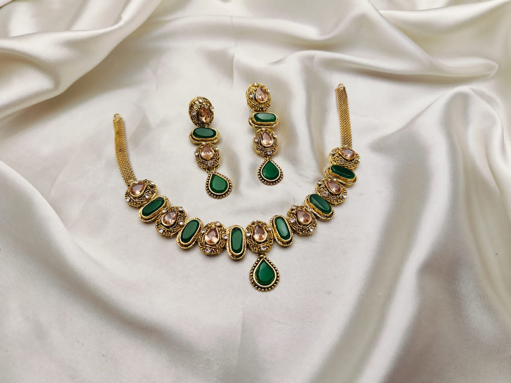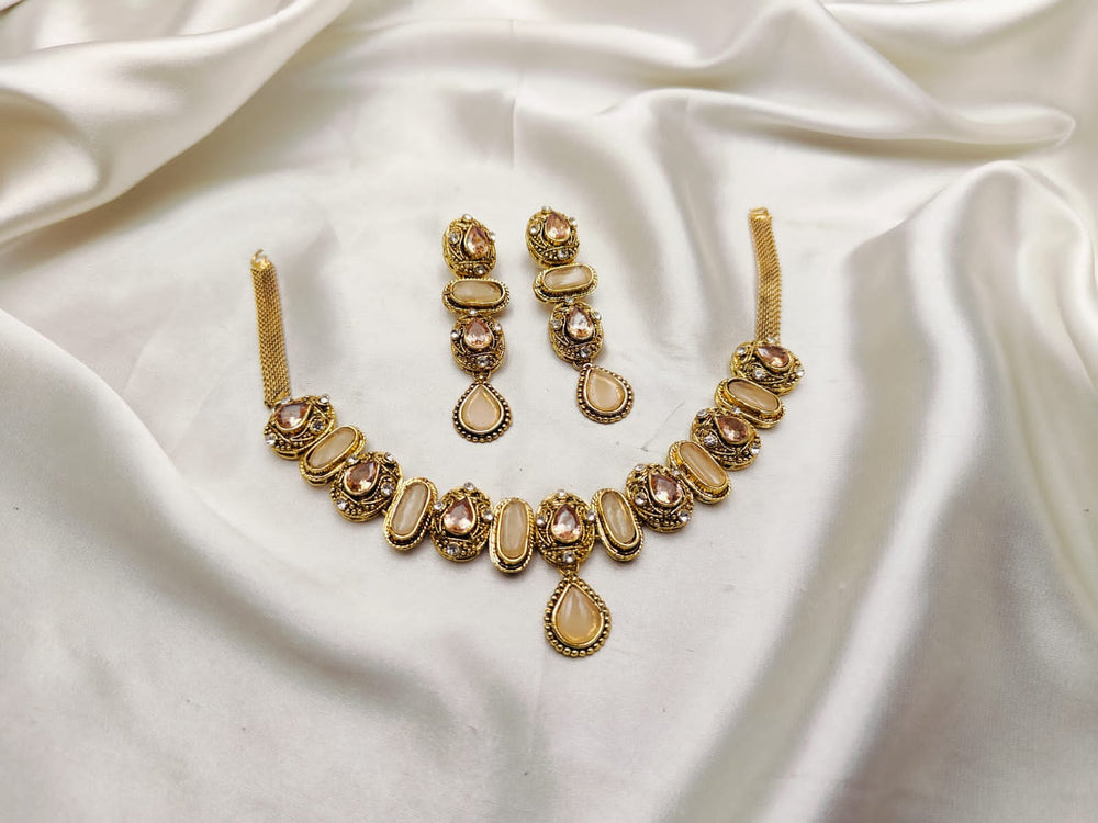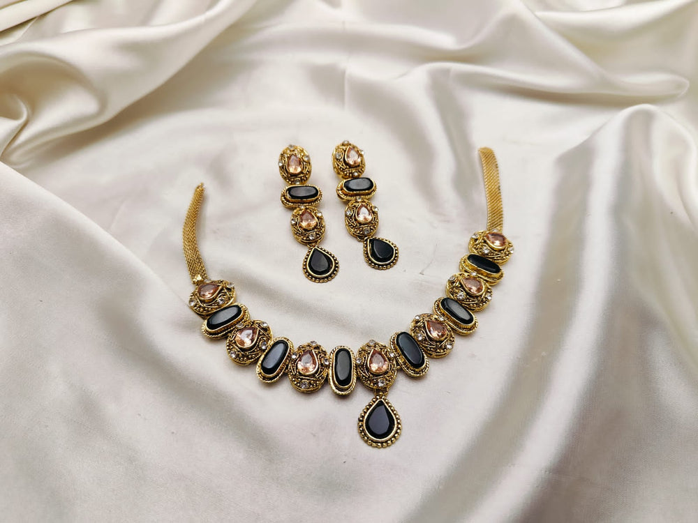 "Elevate your elegance with this stunning fine-quality necklace set, meticulously crafted to perfection. Featuring an intricately designed necklace adorned with shimmering gemstones/crystals (adjust based on materials) and complemented by matching earrings, this set embodies sophistication and grace. The premium materials ensure a luxurious feel and lasting shine, making it an ideal choice for special occasions or as a thoughtful gift. Perfect for weddings, parties, or adding a touch of glamour to any outfit, this exquisite set is a timeless addition to your jewelry collection."