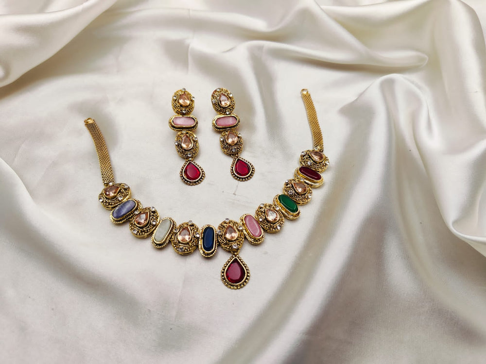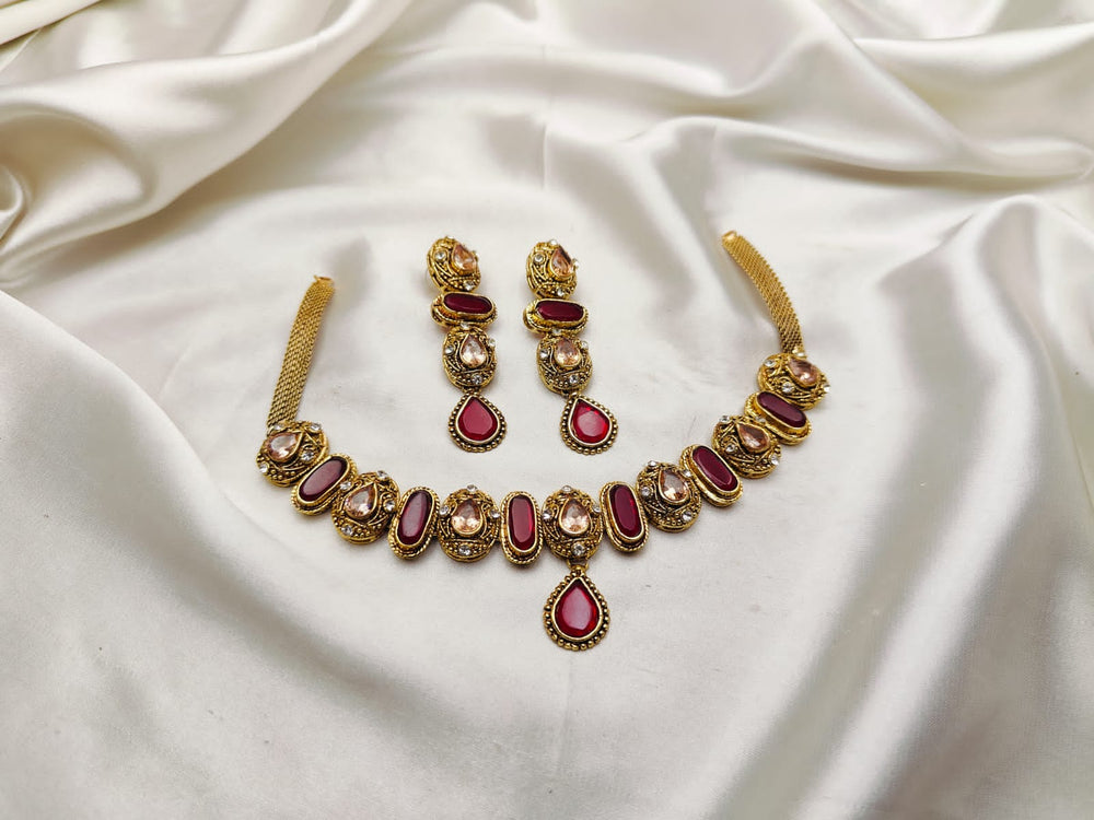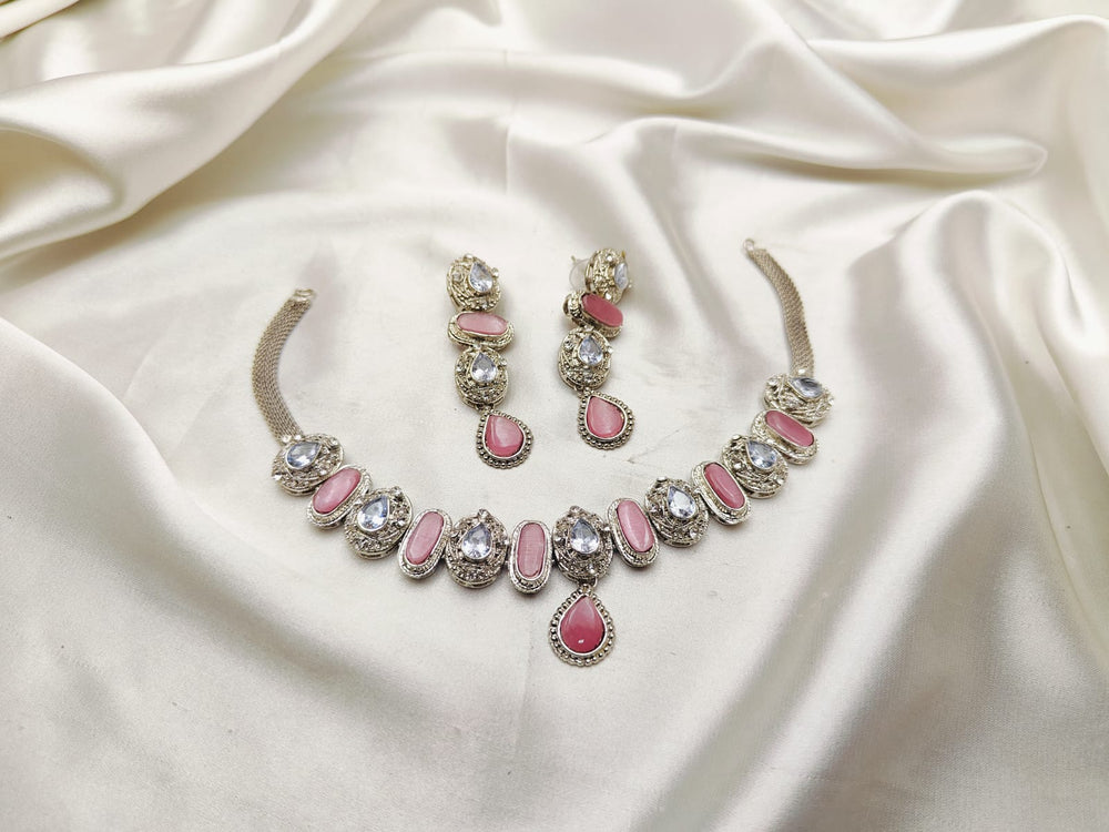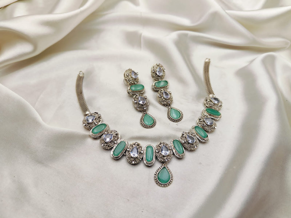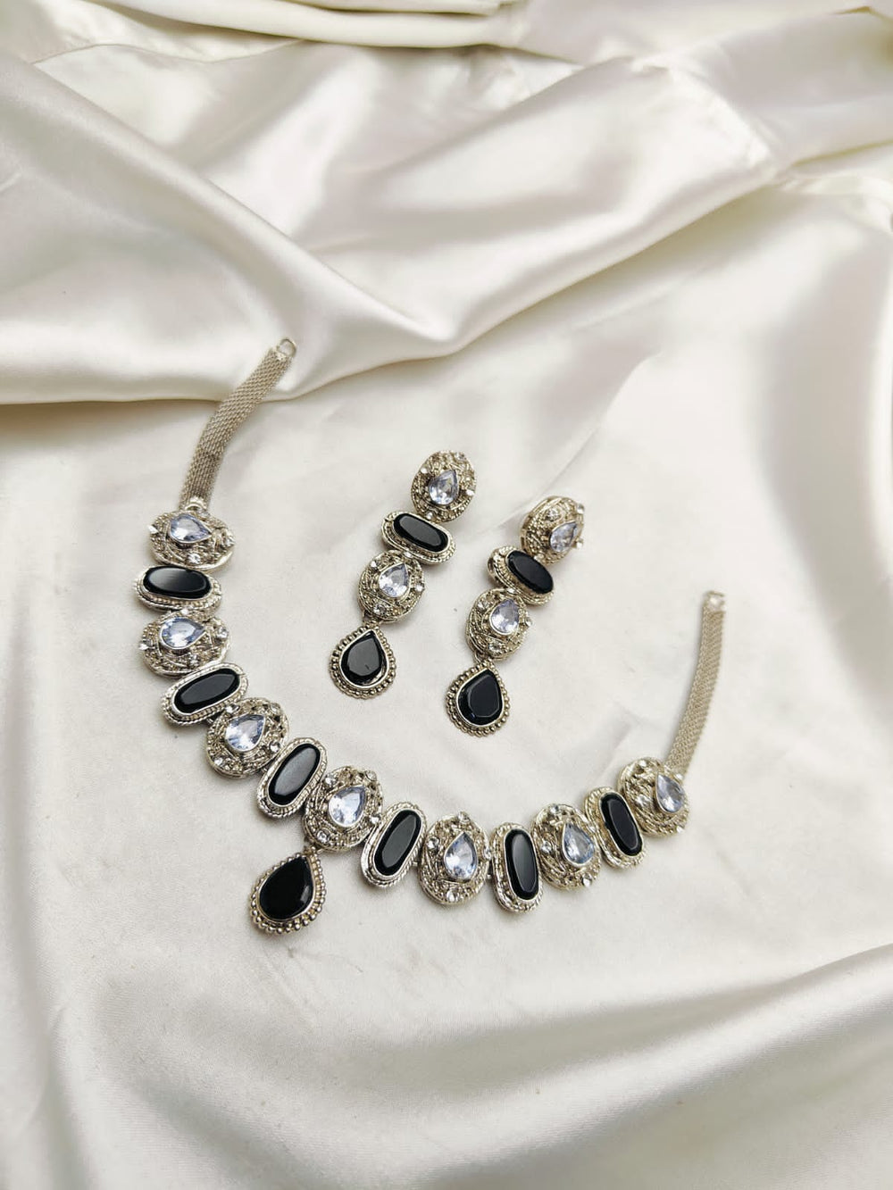 "Elevate your elegance with this stunning fine-quality necklace set, meticulously crafted to perfection. Featuring an intricately designed necklace adorned with shimmering gemstones/crystals (adjust based on materials) and complemented by matching earrings, this set embodies sophistication and grace. The premium materials ensure a luxurious feel and lasting shine, making it an ideal choice for special occasions or as a thoughtful gift. Perfect for weddings, parties, or adding a touch of glamour to any outfit, this exquisite set is a timeless addition to your jewelry collection."