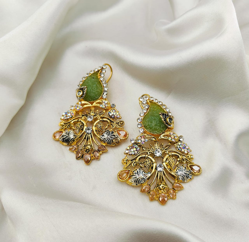 Fine quality Turkish earrings are a blend of intricate craftsmanship and rich cultural heritage. These earrings often feature ornate designs inspired by Ottoman and Anatolian art, incorporating elegant motifs like floral patterns, filigree work, and geometric shapes. They are typically crafted from premium materials such as sterling silver, gold, or rose gold, and adorned with semi-precious stones like turquoise, ruby, sapphire, or emerald for a luxurious touch.