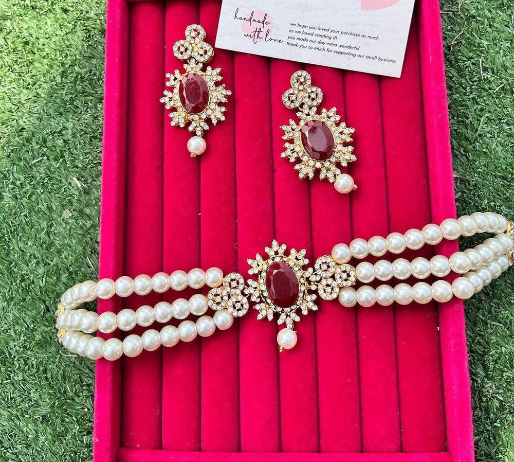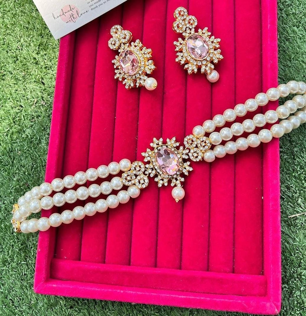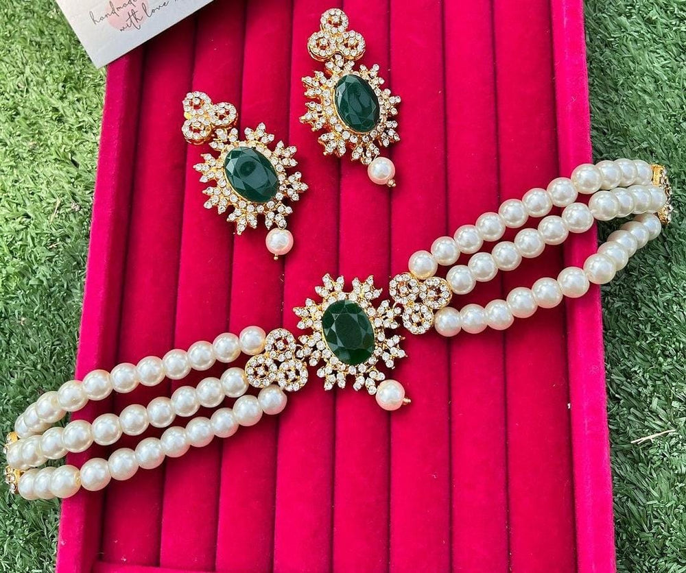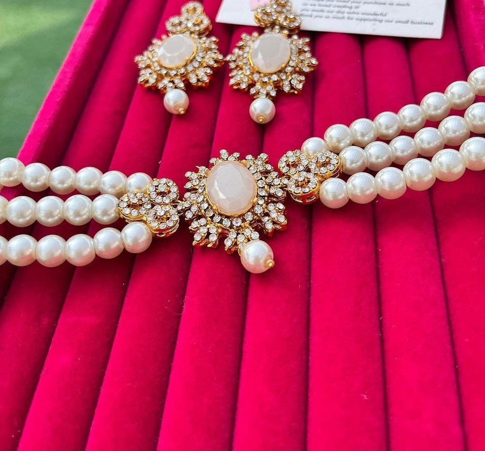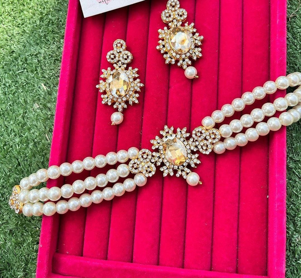 A Gold Plated Choker Set is a stunning and elegant piece of jewelry, often featuring intricate designs and a luxurious finish. The set typically consists of a choker necklace, which sits tightly around the neck, and matching earrings, often designed to complement the necklace. Gold plating gives the jewelry a beautiful, rich golden shine, resembling solid gold without the high cost.