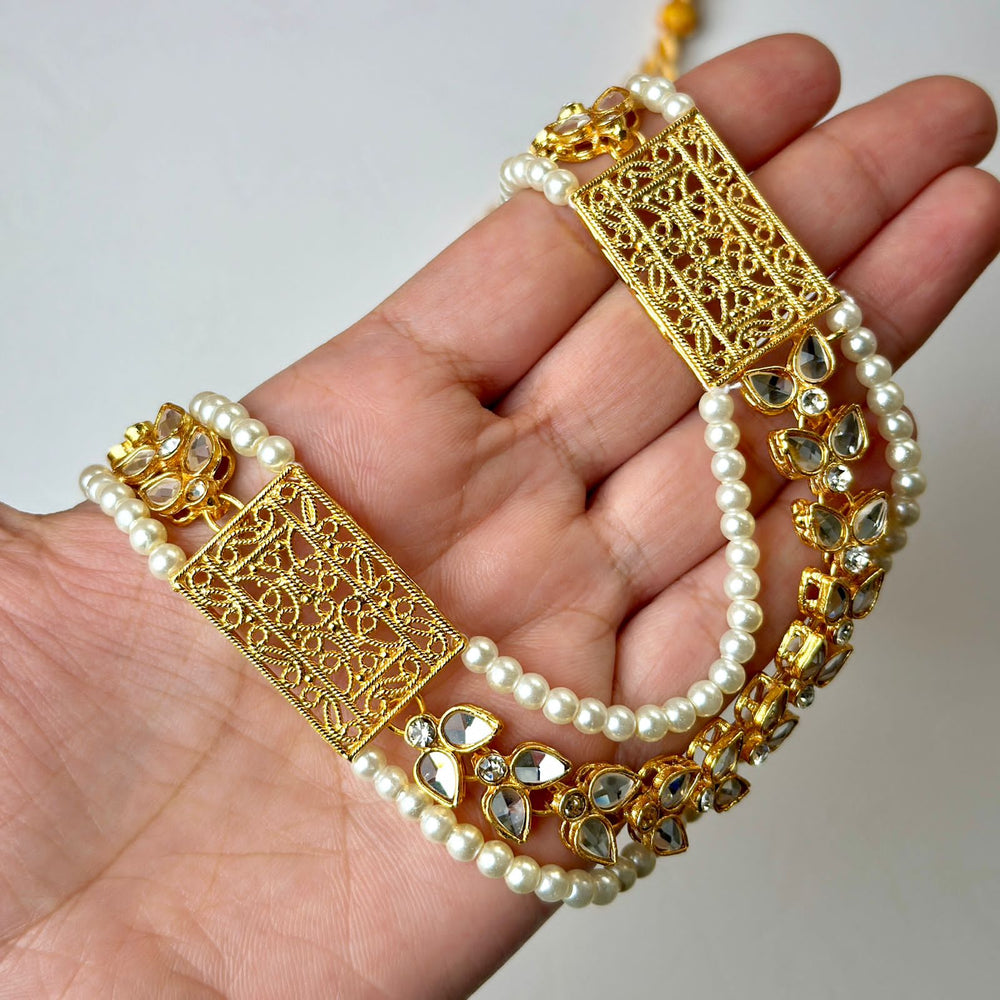 Kundan Mala jewellery is a traditional Indian ornament that exudes elegance and cultural richness. This style of jewellery is known for its intricate craftsmanship and regal aesthetics, often associated with royalty. Here is a detailed description of Kundan Mala jewellery: