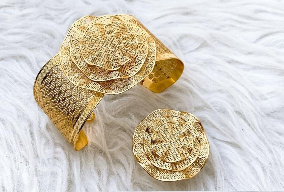 Traditional designs may draw inspiration from cultural patterns, including floral, geometric, or filigree details.