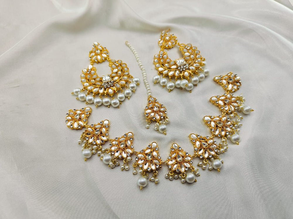 Earrings: Matching earrings that complement the necklace, typically in the form of chandbalis (crescent-shaped), jhumkas (bell-shaped), or danglers.