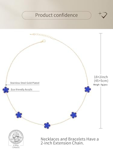 Elevate your everyday style with a pop of vibrant color. This stunning station necklace features five beautifully crafted flower charms in a deep cobalt blue, evenly spaced along a delicate gold-toned chain. Inspired by classic floral motifs, it offers a sophisticated yet playful look that transitions perfectly from day to night.