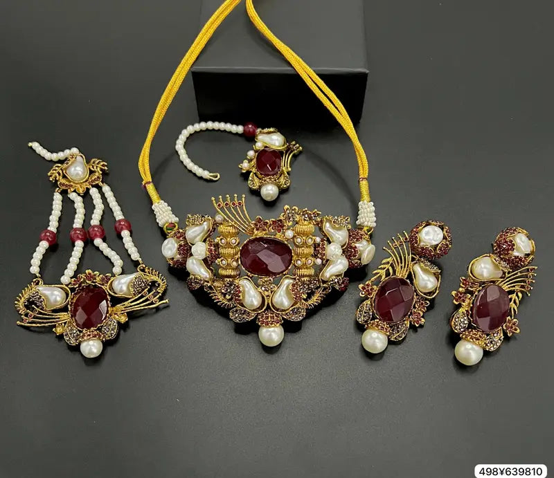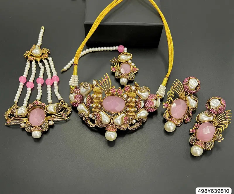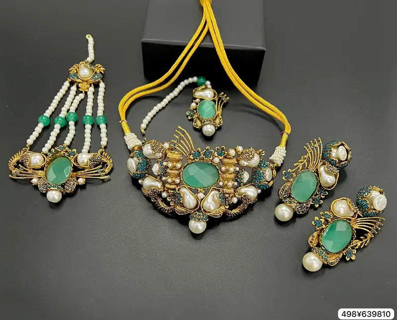The MOP Designer Choker Set is an elegant jewellery masterpiece that beautifully blends modern design with timeless charm. Crafted with precision, this choker features stunning Mother of Pearl (MOP) detailing that adds a soft, luxurious glow. The gold-plated finish enhances its sophistication, making it a perfect accessory for both traditional and contemporary outfits. Paired with matching earrings, the set radiates grace and refinement, ideal for weddings, festive occasions, or evening events. Its exquisite craftsmanship and premium quality make it a standout addition to any jewellery collection, offering a perfect balance of elegance, style, and beauty for every woman.