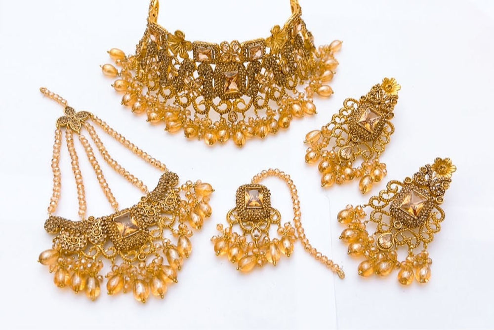 2. Earrings: Coordinating earrings, which may range from simple studs to elaborate dangling or hoop designs, complementing the necklace. They might be decorated with gemstones or intricate wirework.