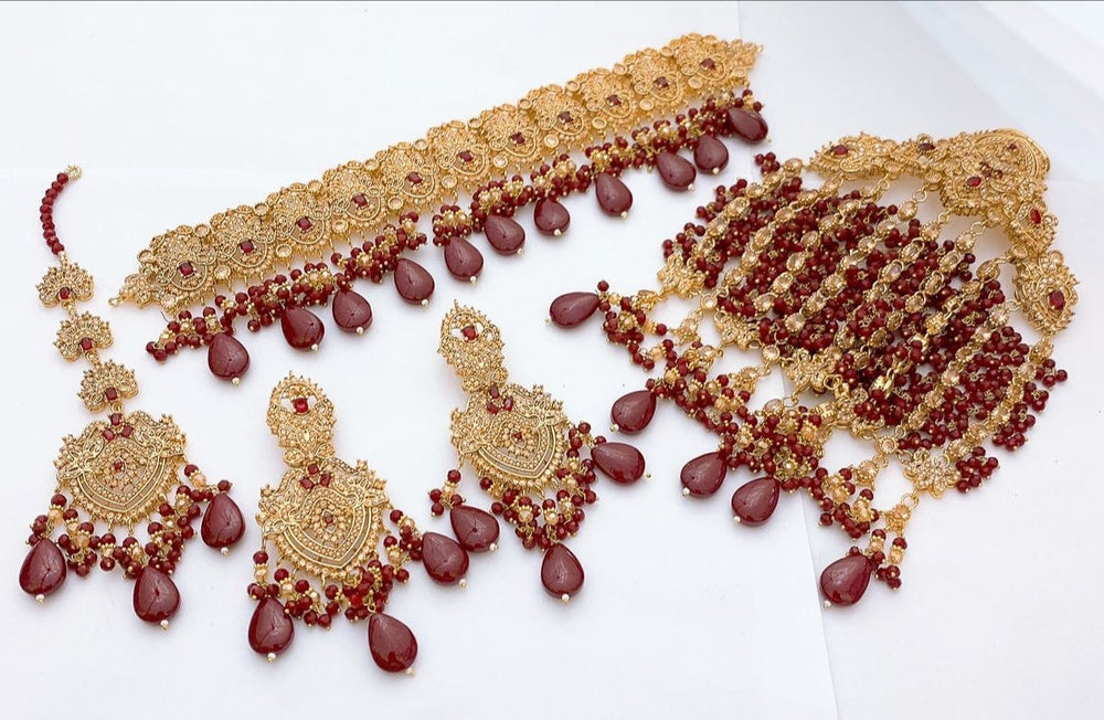 The set typically includes a necklace, earrings, bracelet, and sometimes a ring or headpiece.