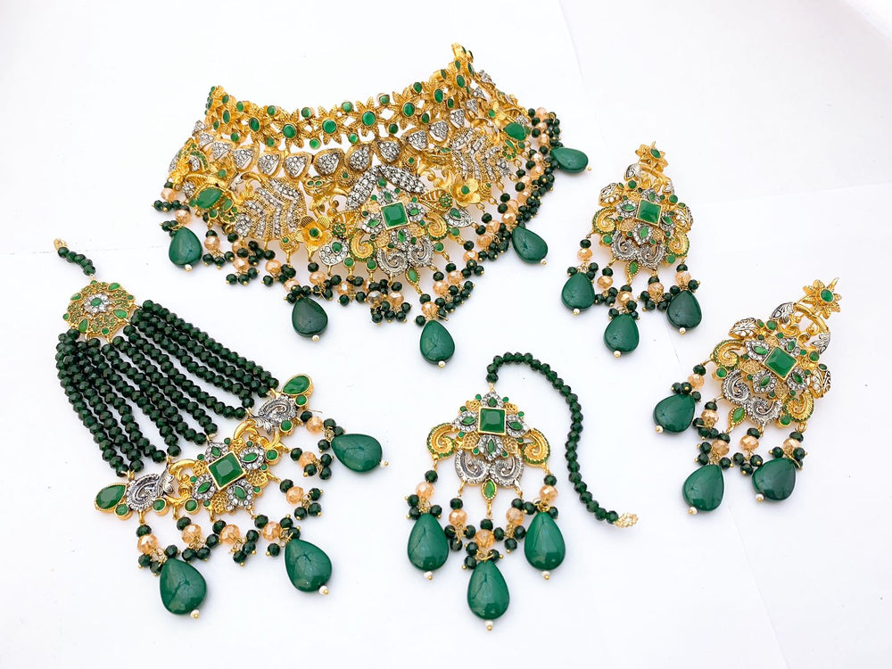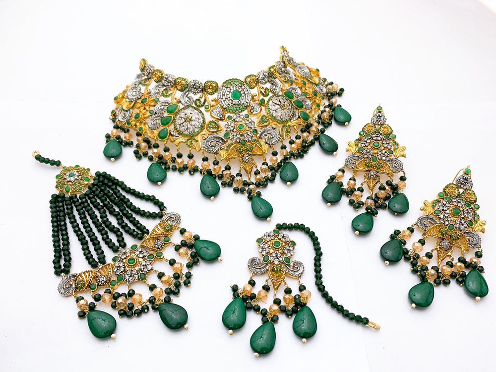 A Native Made Real Stones Bridal Set is an elegant and authentic jewelry set crafted with real gemstones and often designed to reflect cultural artistry. Here's a detailed description: