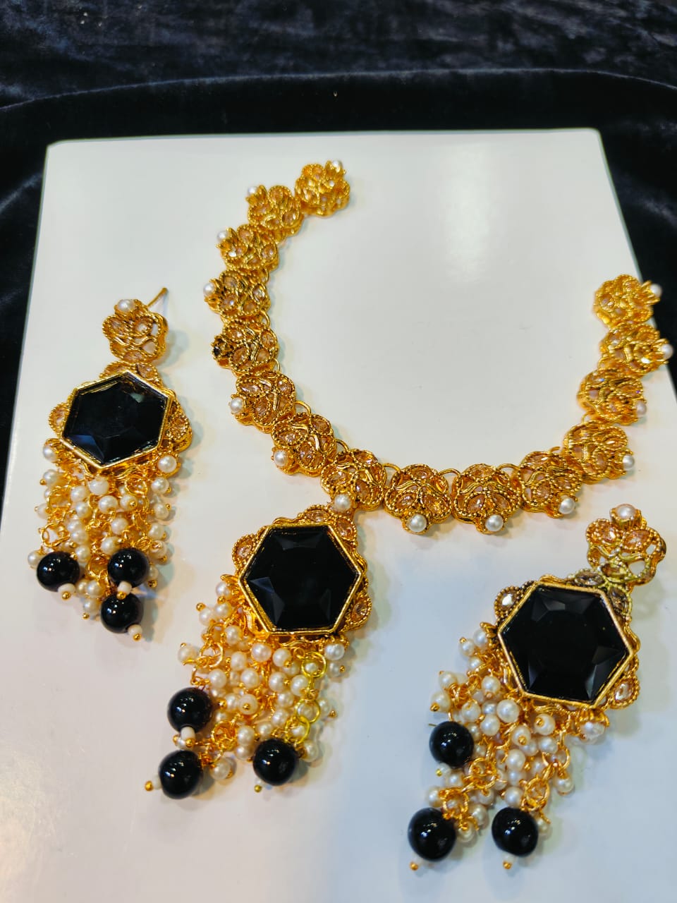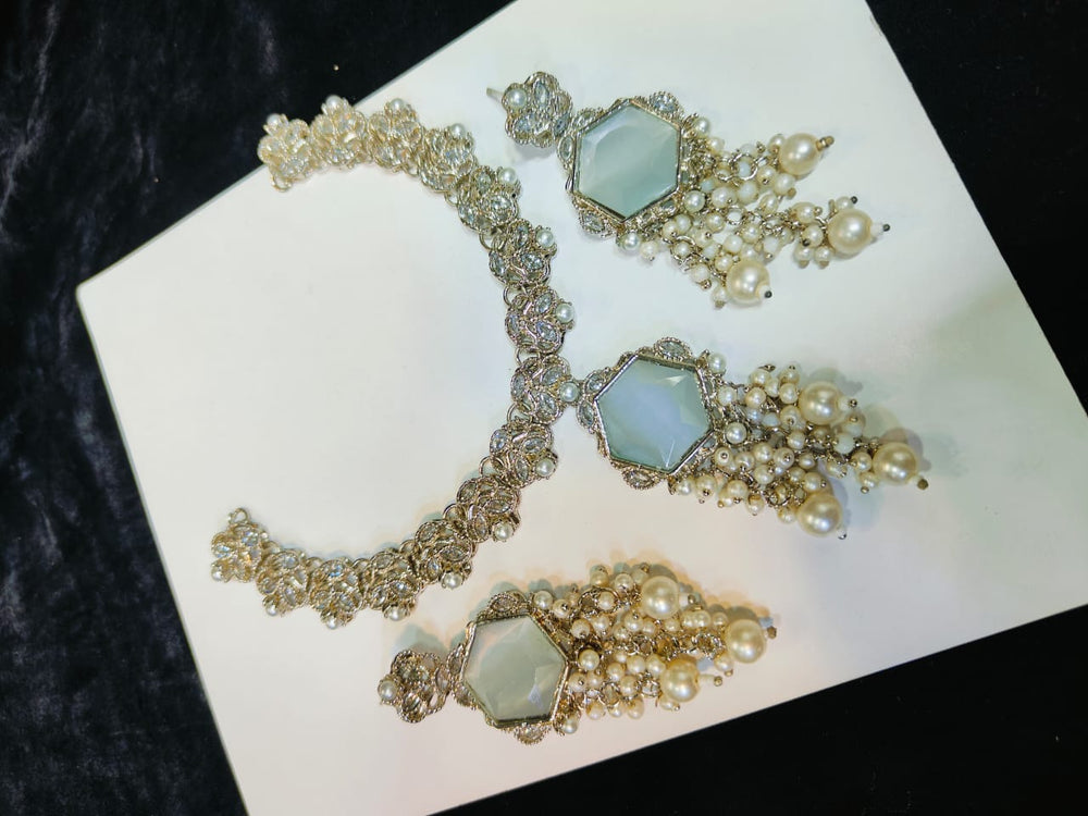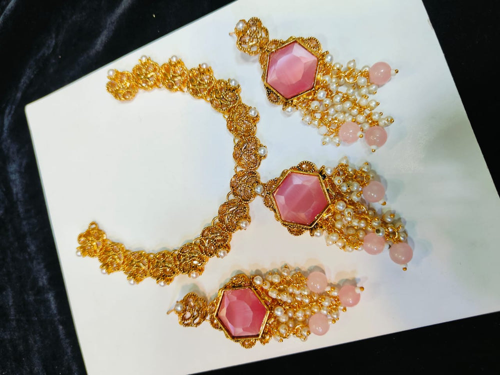 A Necklace Set with Stone Jewellery typically includes a matching combination of a necklace and earrings, sometimes accompanied by additional pieces like a bracelet or ring. These sets are often adorned with various types of stones that enhance their beauty. Here's a detailed description: