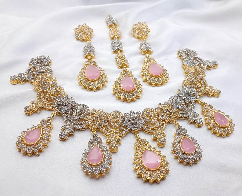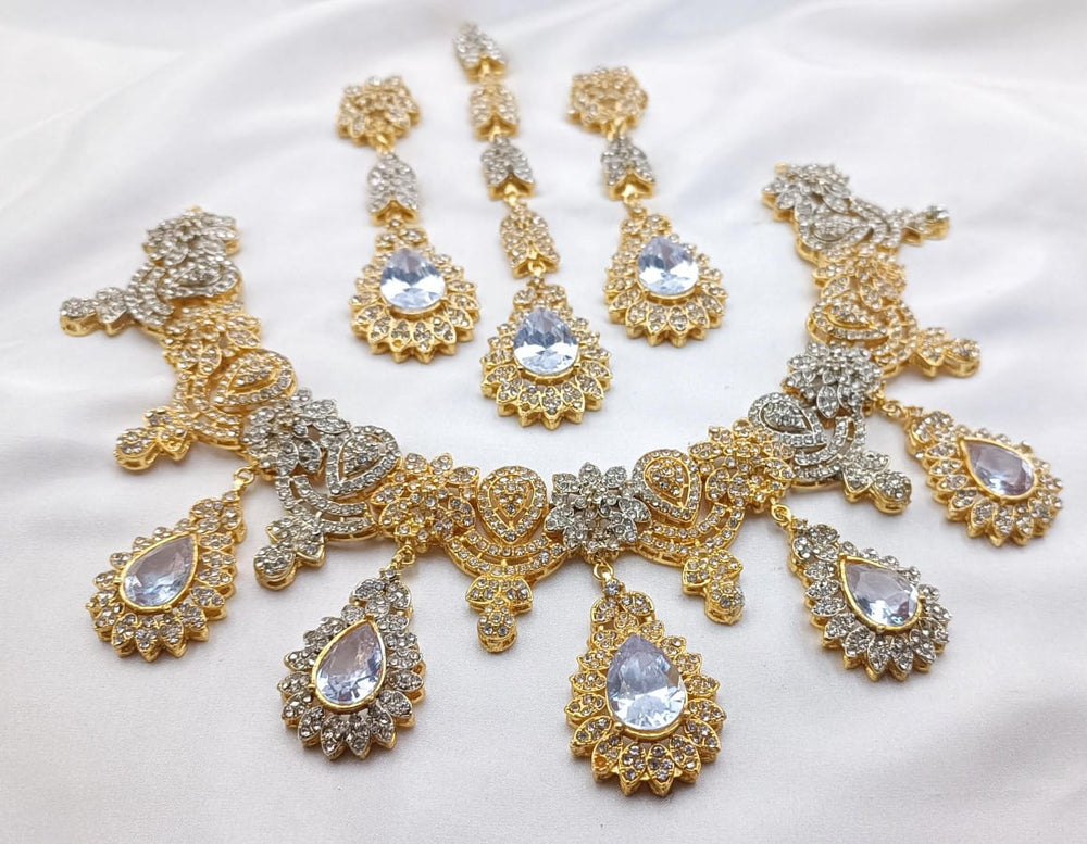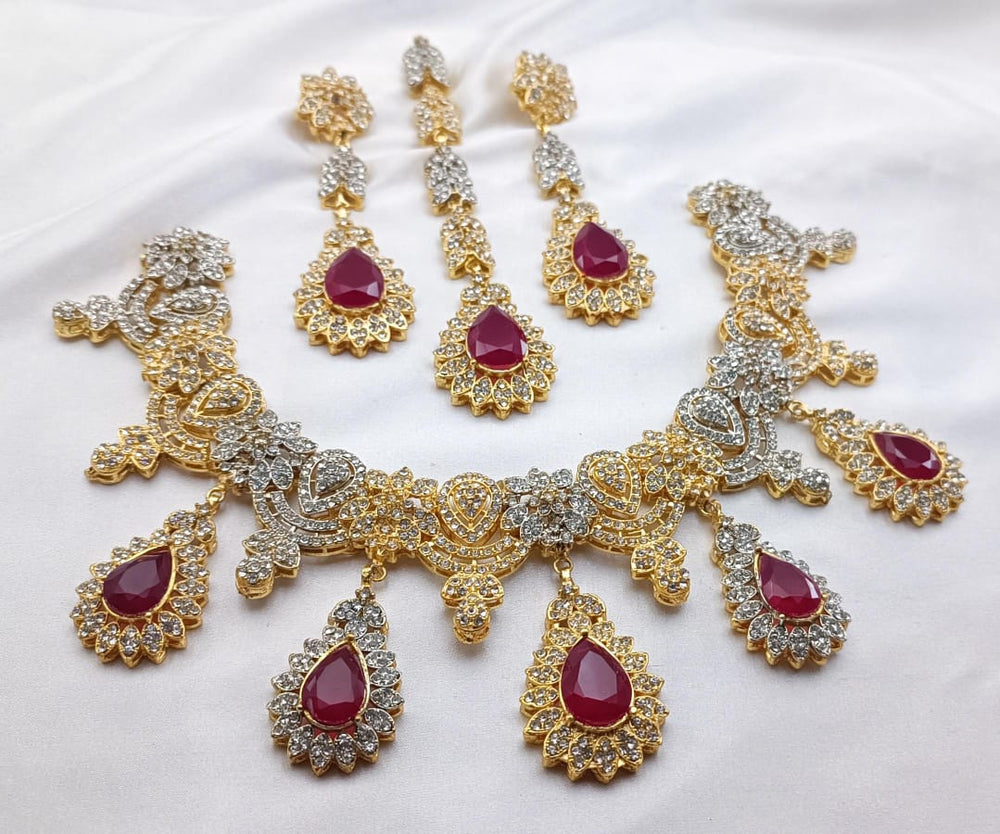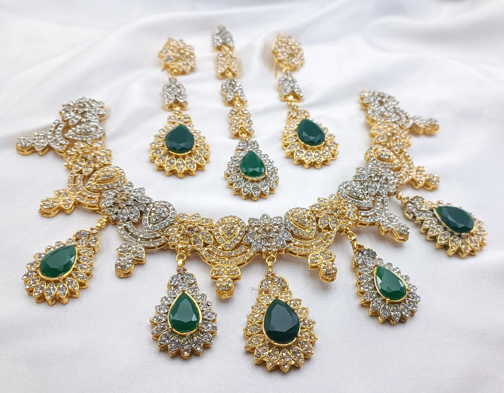 Some sets may include a matching maang tikka or bracelet for a complete look.