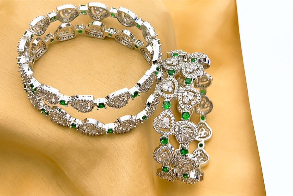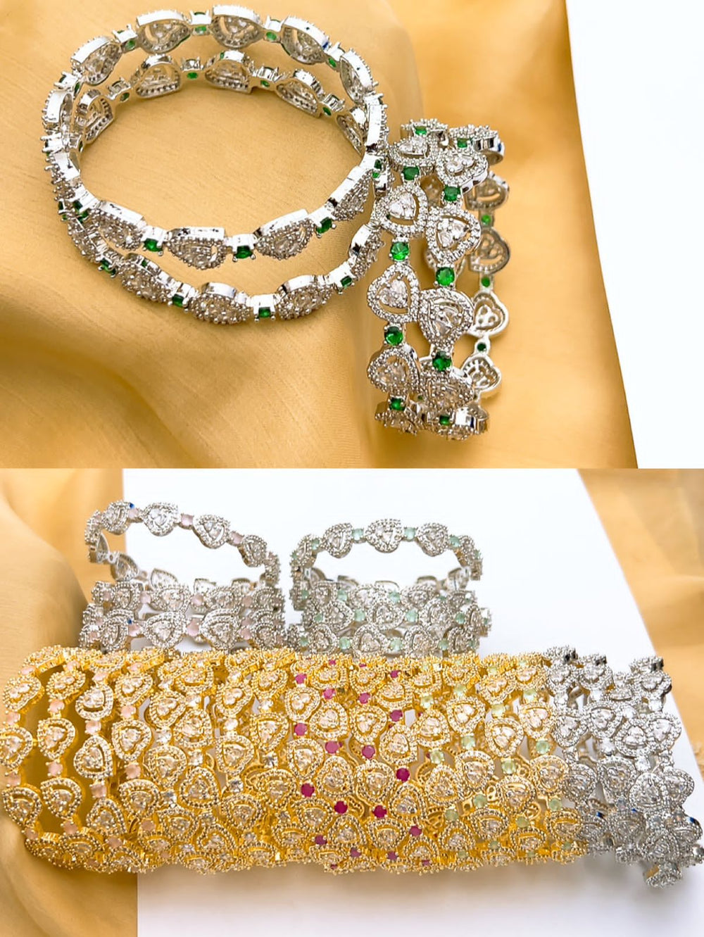 The bangles may be crafted from gold, silver, or a combination of metals, often embellished with intricate patterns or delicate gemstones. The design is often timeless and versatile, suitable for various occasions like weddings, parties, or everyday wear.