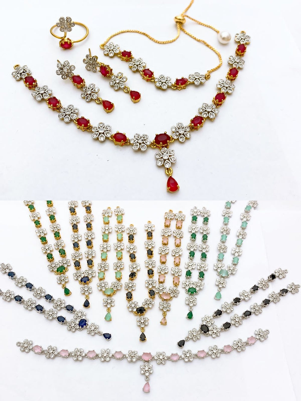 A One Carat Real Stones Combo Set Jewellery typically refers to a collection of high-quality jewelry pieces that include one carat of genuine gemstones, often combined into an elegant set. This set usually contains multiple pieces, such as:
