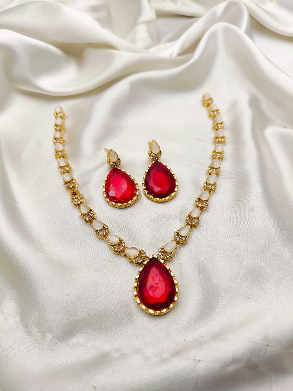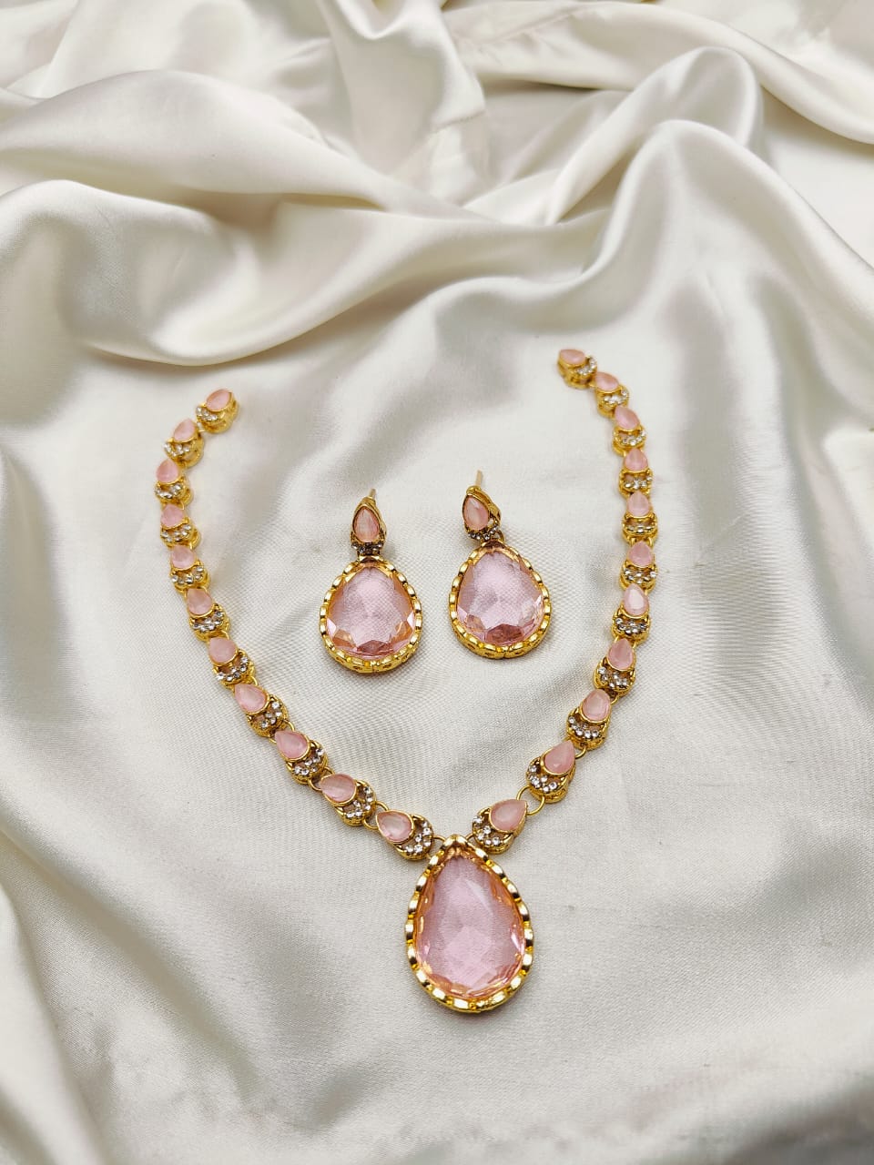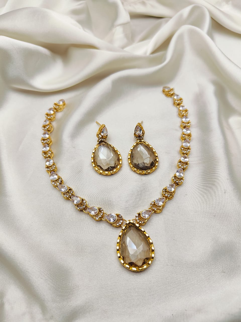 "Elevate your elegance with this exquisite Real Diamond Cut Stones Work Necklace Set, meticulously crafted to radiate timeless beauty. The necklace features intricately cut stones that mimic the brilliance of real diamonds, reflecting light with unmatched sparkle. Designed with a perfect balance of sophistication and charm, the set includes a matching pair of earrings to complete your look.