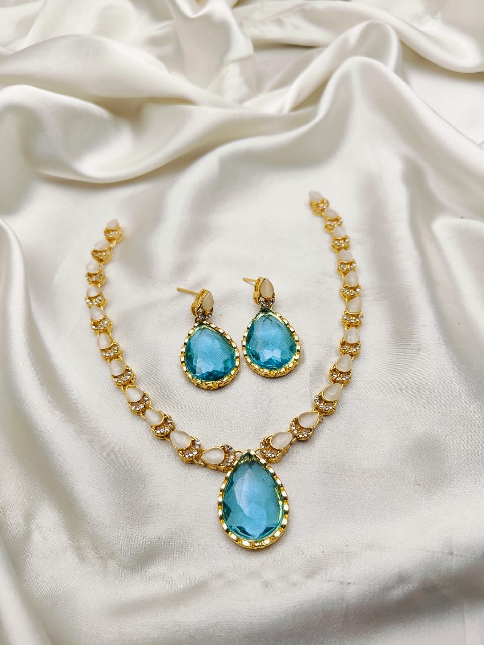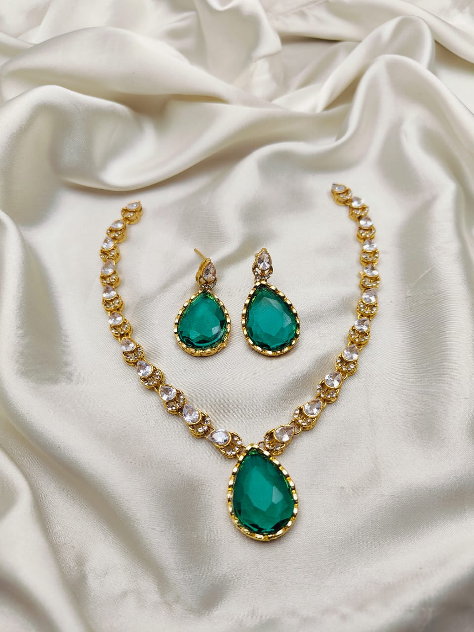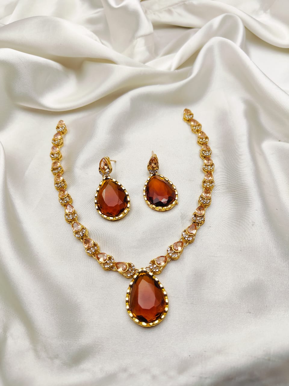 Here’s an elegant description for a Real Diamond Cut Stones Work Necklace Set: