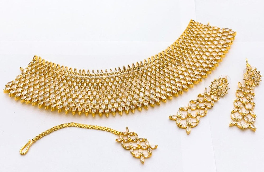 A Real Stones Bridal Set typically includes intricately designed jewelry pieces made with authentic gemstones and precious metals. These sets are tailored to enhance a bride’s elegance and may include the following items: