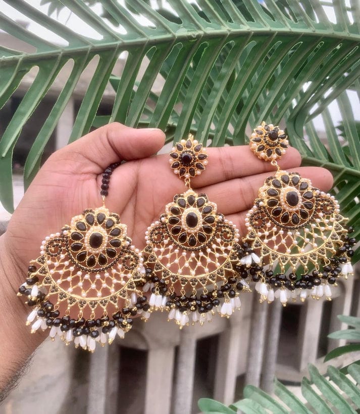 Enhance your look with this beautifully designed tikka earrings set, featuring intricate detailing and elegant pearl accents. A perfect accessory for weddings, festive occasions, and special events.
