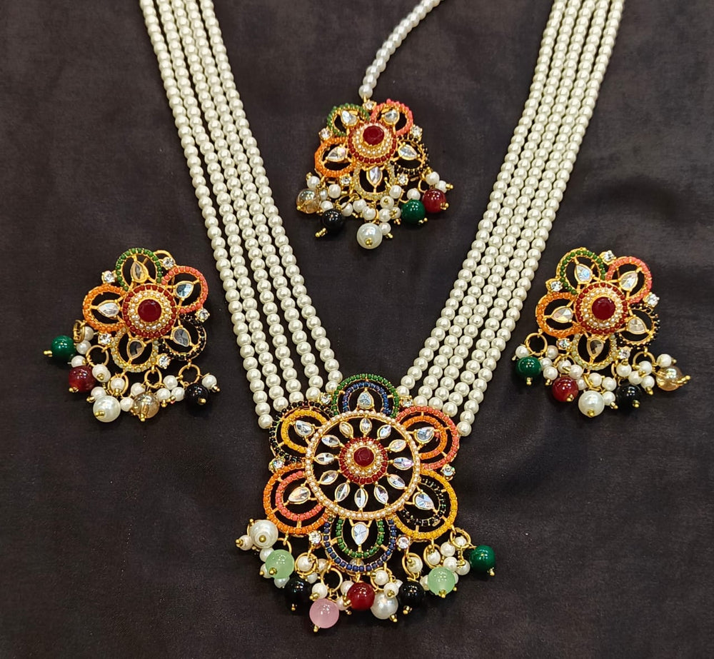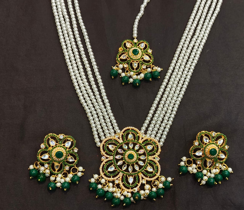 An Artificial Elegant Maala Set is a beautiful piece of imitation jewelry designed to exude sophistication and charm, perfect for special occasions or daily wear. These sets typically include:
