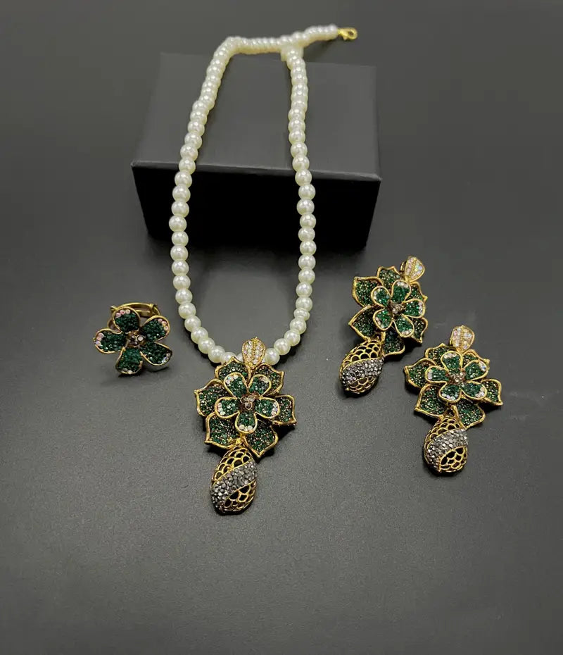 The MOP Designer Fine Quality Mala Set is a stunning piece of jewellery that beautifully blends elegance with craftsmanship. Designed with high-quality materials and a luxurious Mother of Pearl finish, this mala set exudes timeless charm. Each bead and pendant is meticulously crafted to create a graceful and royal look, perfect for weddings, parties, and festive occasions. The set includes a matching pair of earrings, enhancing its overall appeal. Its fine detailing and durable polish make it a must-have addition to your jewellery collection — a perfect choice for those who love sophistication and traditional beauty combined.